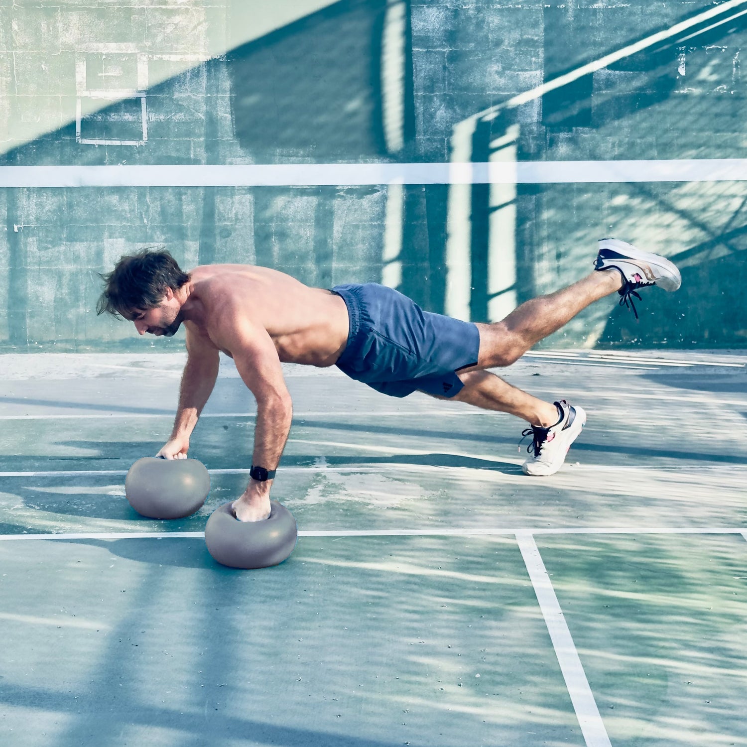 See how he trainsIt’s unique because it’s performance training you can take anywhere. The fitball inflates or deflates in seconds, and the app provides full-body workouts.