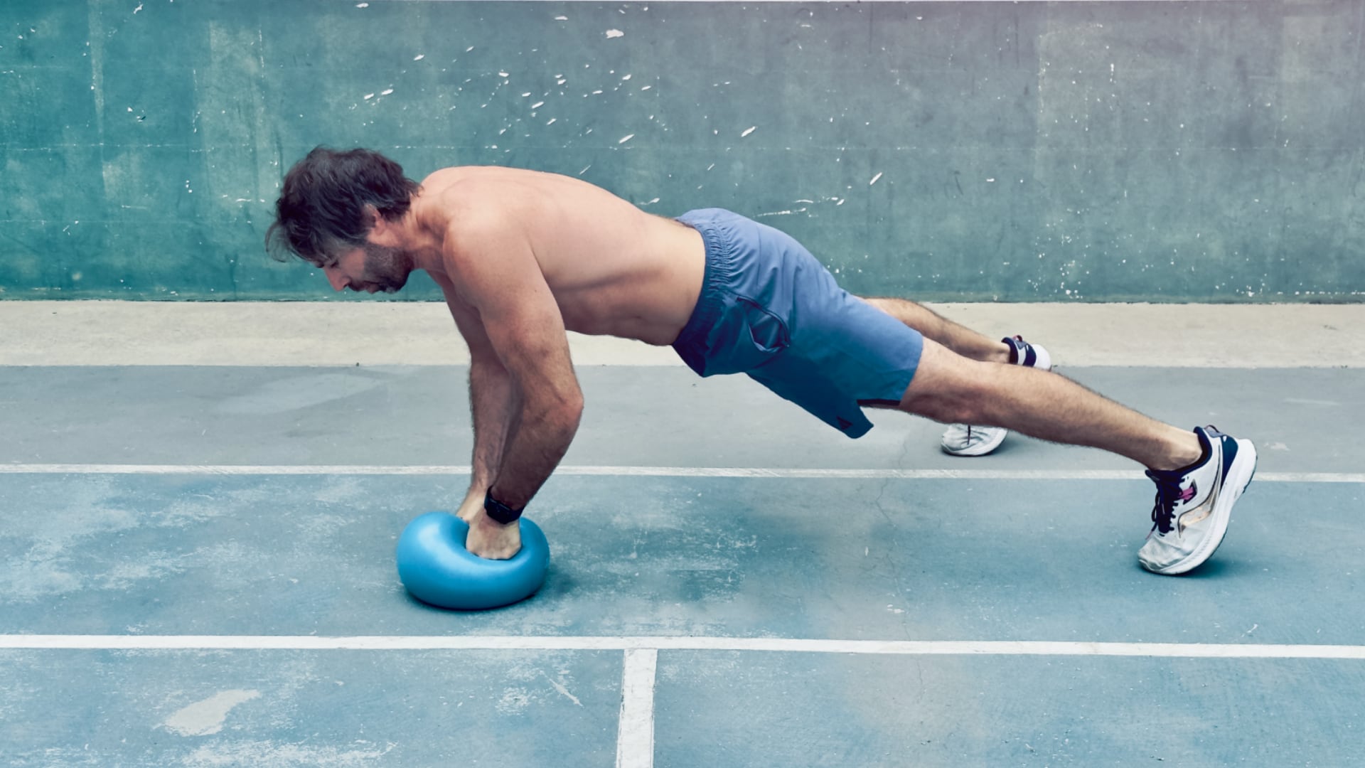 See how he trainsIt’s unique because it’s performance training you can take anywhere. The fitball inflates or deflates in seconds, and the app provides full-body workouts.